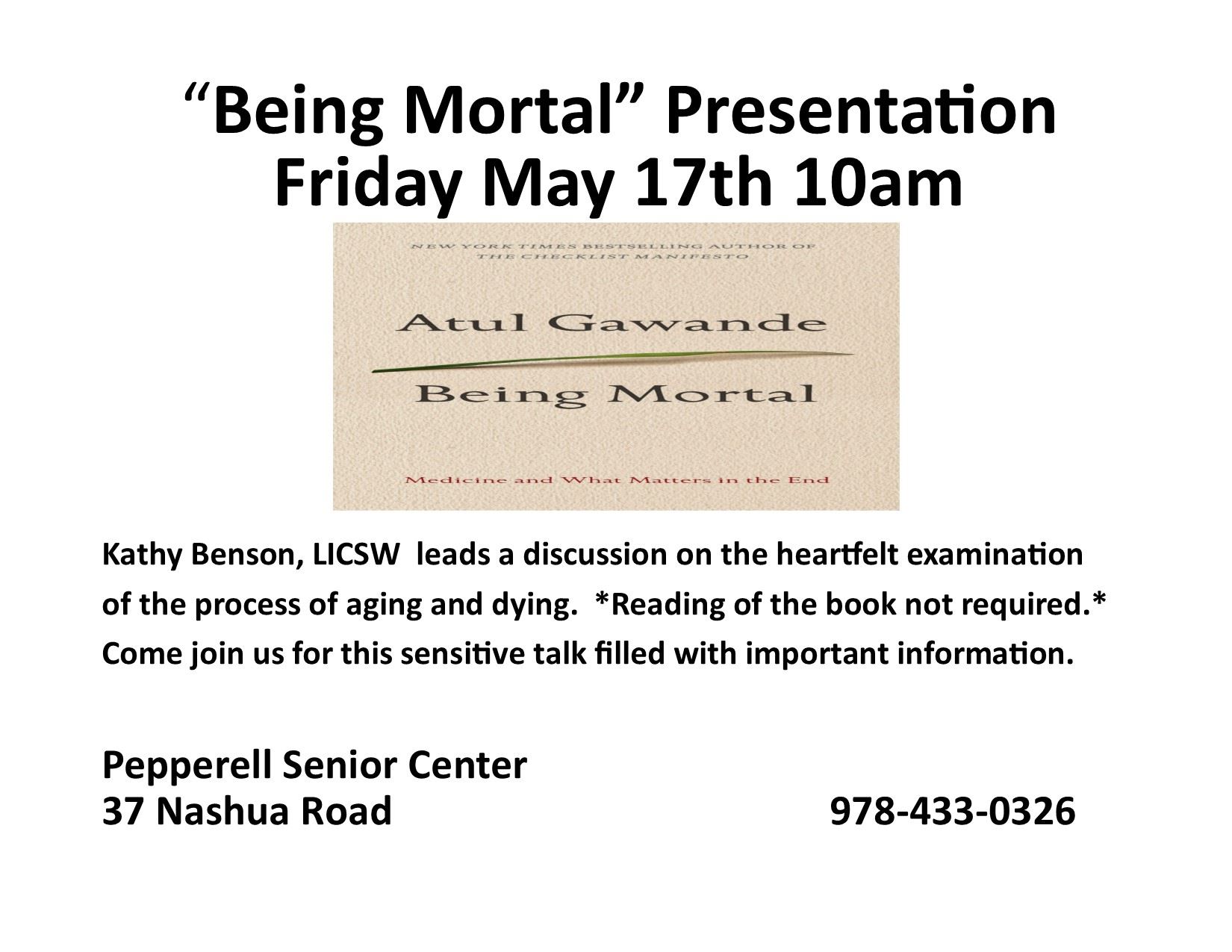 [ARCHIVED] “Being Mortal” Presentation - 5/17/2019 10 am @ Pepperell Senior Center