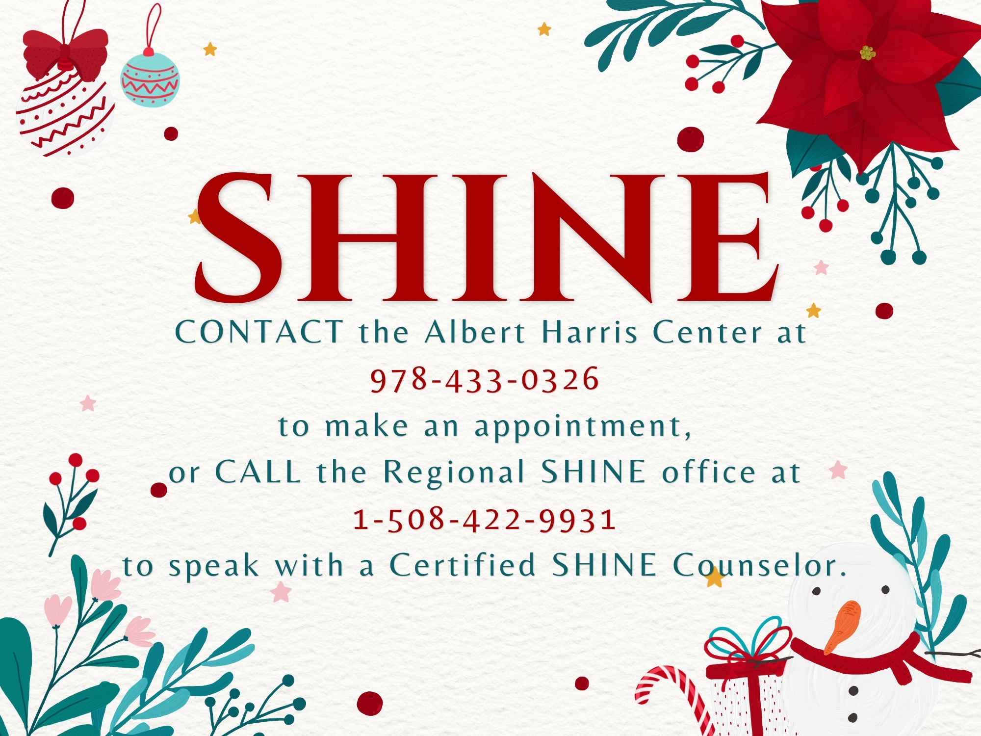 • or to speak with a Certified SHINE Counselor call the Regional SHINE office at 1-508-422-9931
