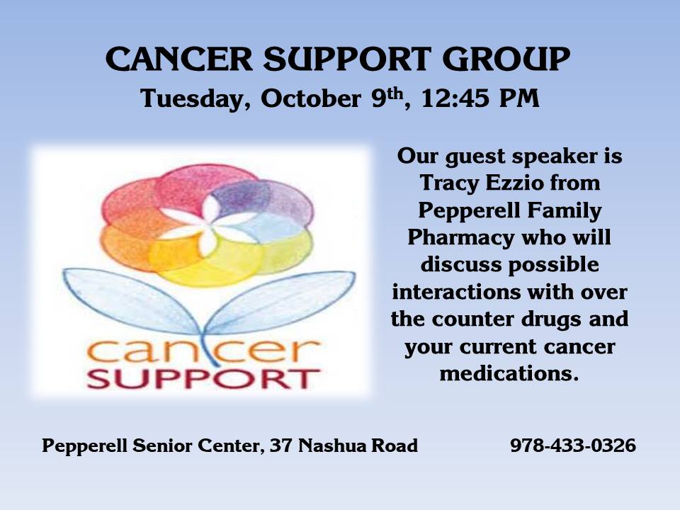 [ARCHIVED] Cancer Support 10/9/18 12:45 PM @ Pepperell Senior Center
