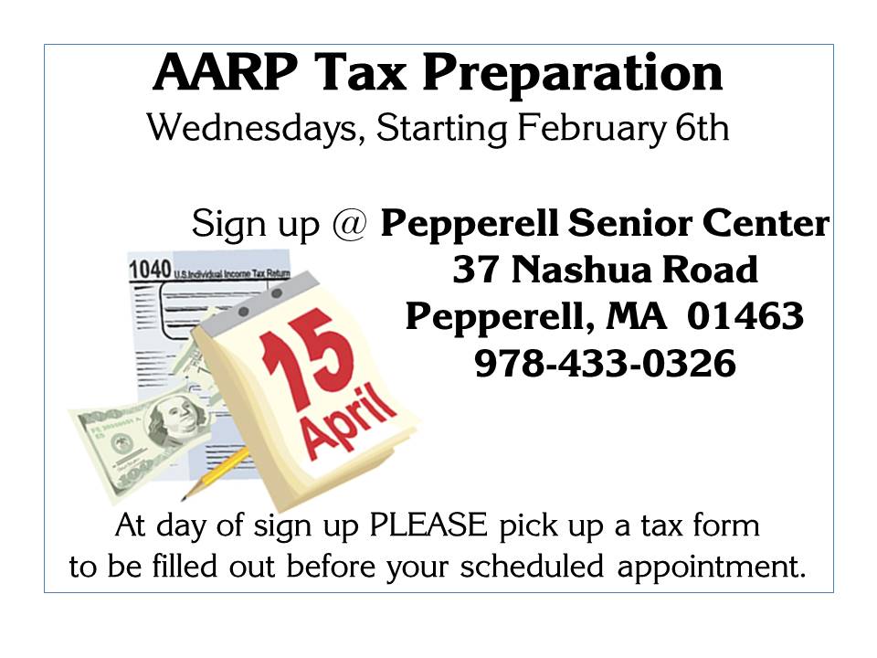 Sign up at the Pepperell Senior Center, 37 Nashua Rd, Pepperell, MA