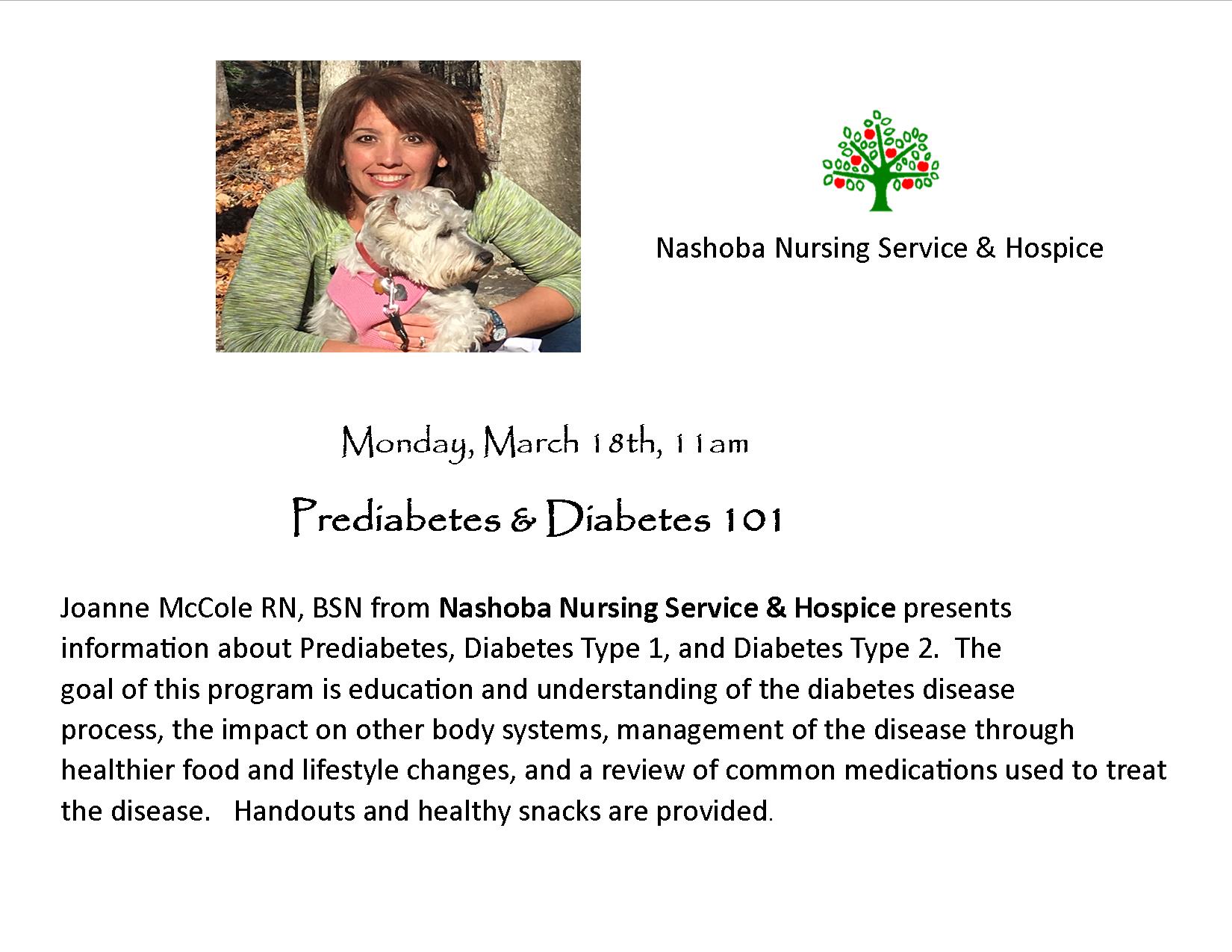 Joanne McCole RN, BSN from Nashoba Nursing Service & Hospice presents information about Prediabetes, Diabetes Type 1, and Diabetes Type 2.