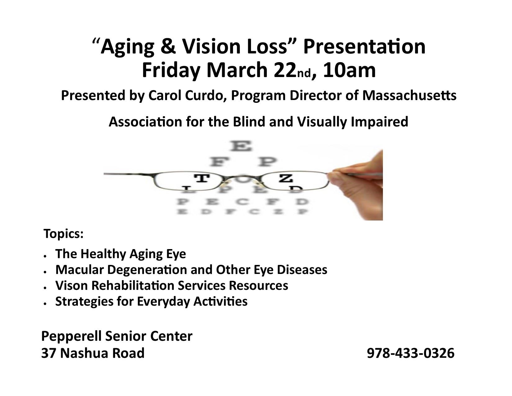 [ARCHIVED] “Aging & Vision Loss” Presentation", 3/22/2019 10:00 AM @ Pepperell Senior Center